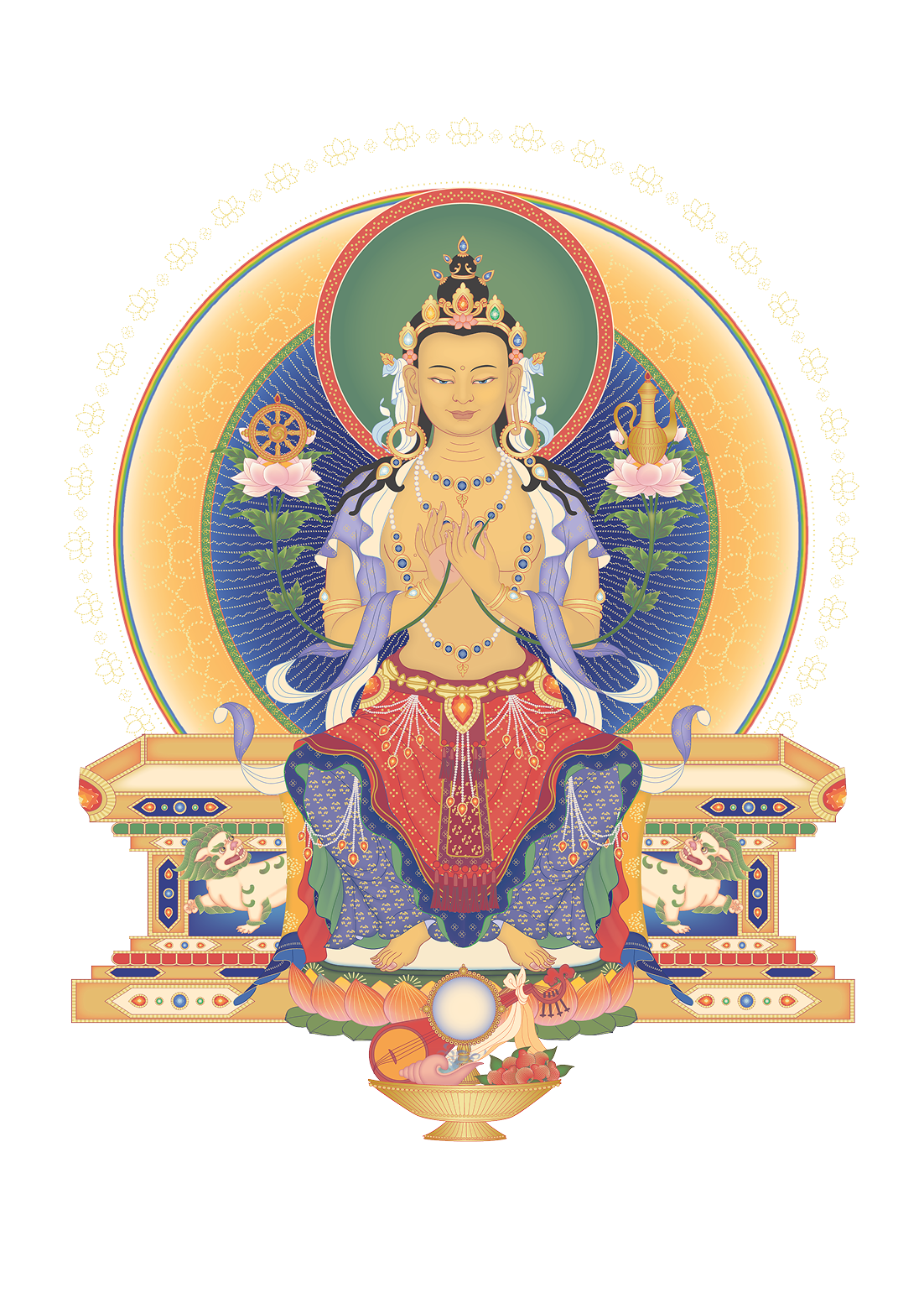 Buddha Maitreya is the manifestation of all the Buddha's realization of loving kindness, who helps and guides us along the stages of the path to enlightenment. By relying upon Buddha Maitreya with faith we will receive this Buddha's special care, and he will bestow upon us the realizations of Kadam Lamrim through which we can solve our own and others' wishes, and ultimately accomplish the supreme happiness of enlightenment.