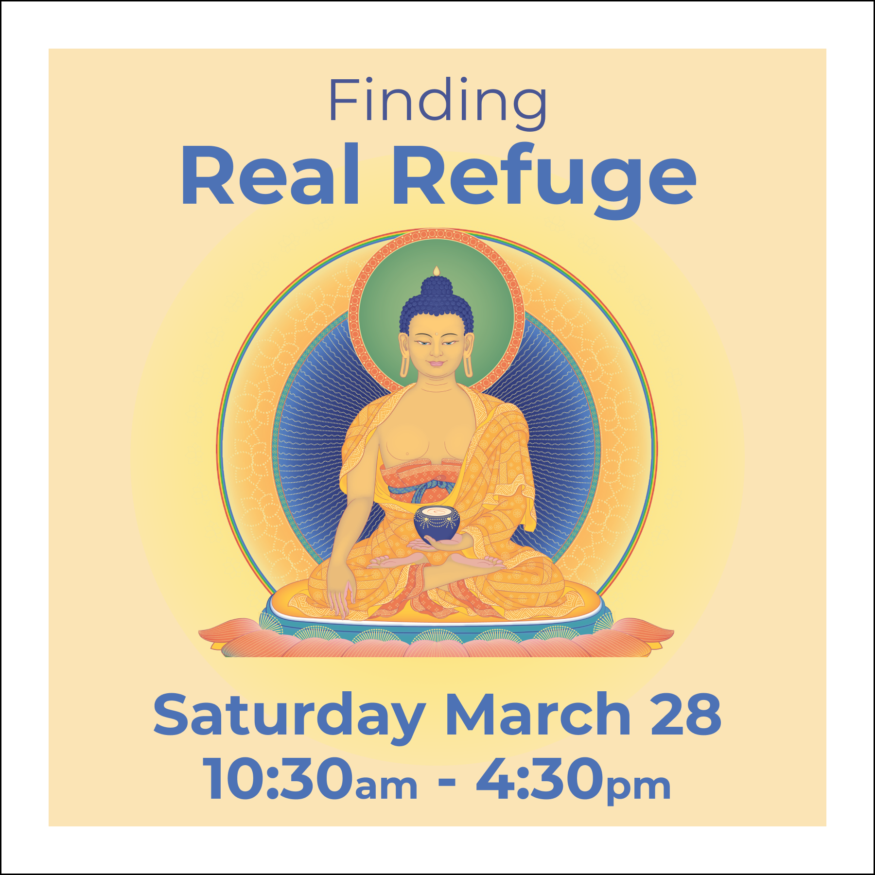 In these uncertain times, many of us feel a deep need for peace, comfort, and connection.  Please join us for gentle prayers to the Buddha of Compassion, Avalokiteshvara, as we open our hearts and invite his blessings for ourselves, our loved ones, and our world.